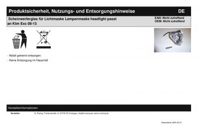 Titel: | Scheinwerferglas für Lichtmaske Lampenmaske headlight passt an Ktm Exc 08-13 |