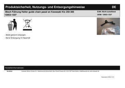| Titel: | Blech Führung Halter guide chain passt an Kawasaki Klx 250 300 12053-1337 |