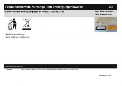 | Titel: | Blinker winker turn signal passt an Honda 33450-463-702 |