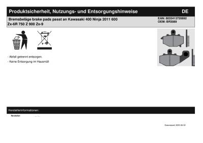 | Titel: | Bremsbeläge brake pads passt an Kawasaki 400 Ninja 2011 600 Zx-6R 750 Z 900 Zx-9 |
