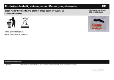 Titel: | Blech Halter Bremse fairing bracket brace passt an Suzuki Gs 1150 94550-00A00 |