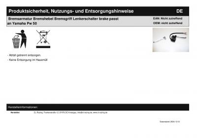 Titel: | Bremsarmatur Bremshebel Bremsgriff Lenkerschalter brake passt an Yamaha Pw 50 |