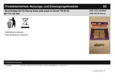Titel: | Bremsbeläge 064 S3 Racing brake pads passt an Ducati 750 92-93 851 Tm 125 450 |