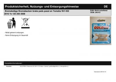 Titel: | Bremsbeläge Bremsbacken brake pads passt an Yamaha Wrf 450 2016 Yz 125 250 2008 |