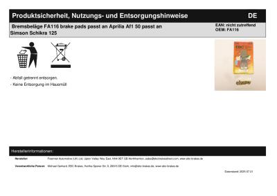Titel: | Bremsbeläge FA116 brake pads passt an Aprilia Af1 50 passt an Simson Schikra 125 |