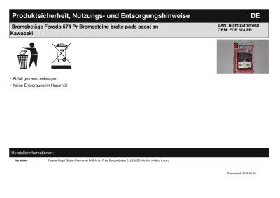 Titel: | Bremsbeläge Ferodo 574 Pr Bremssteine brake pads passt an Kawasaki |