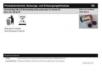 Bremsbeläge Mcb 32 Bremsbelag brake pads passt an Honda Cb 750 K Cb 750 69-76