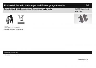 Titel: | Bremsbeläge P 160 Bremsbacken Bremssteine brake pads |
