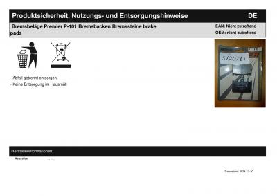 Titel: | Bremsbeläge Premier P-101 Bremsbacken Bremssteine brake pads |