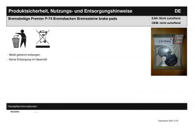 Titel: | Bremsbeläge Premier P-74 Bremsbacken Bremssteine brake pads |