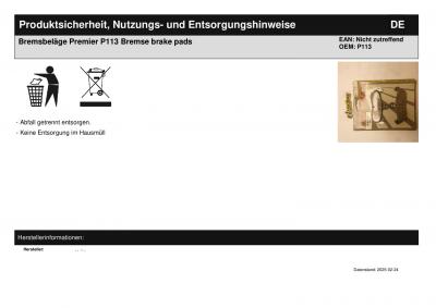 Titel: | Bremsbeläge Premier P113 Bremse brake pads |
