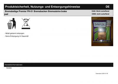Titel: | Bremsbeläge Premier PH-51 Bremsbacken Bremssteine brake pad |