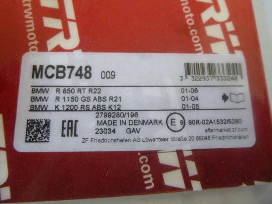 Bremsbeläge Trw MCB748 brake pads passt an Bmw 1200 Rs 01-05 R St Rt 1300 S Gt