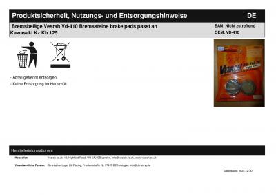 | Titel: | Bremsbeläge Vesrah Vd-410 Bremssteine brake pads passt an Kawasaki Kz 200 Kh 125 |