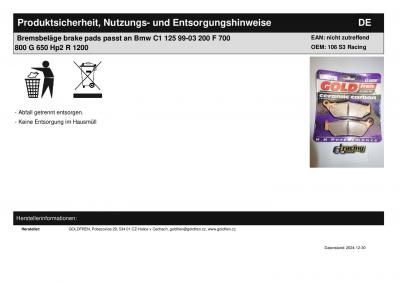 Titel: | Bremsbeläge brake pads passt an Bmw C1 125 99-03 200 F 700 800 G 650 Hp2 R 1200 |