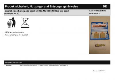 Titel: | Bremsbeläge brake pads passt an Ktm Mx 80 86-92 Gxe Gxr passt an Gilera R1 50 |