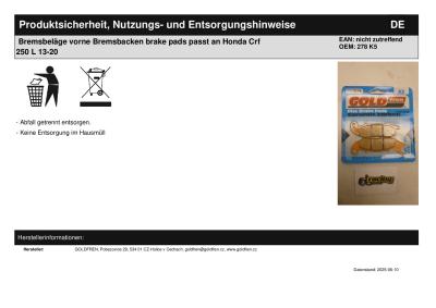 Titel: | Bremsbeläge vorne Bremsbacken brake pads passt an Honda Crf 250 L 13-20 |