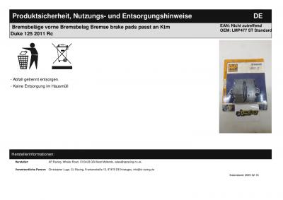 Titel: | Bremsbeläge vorne Bremsbelag Bremse brake pads passt an Ktm Duke 125 2011 Rc |