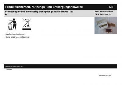 Titel: | Bremsbeläge vorne Bremsbelag brake pads passt an Bmw R 1150 Rs |