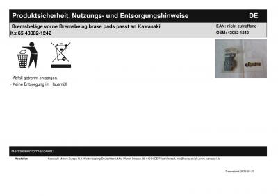 Titel: | Bremsbeläge vorne Bremsbelag brake pads passt an Kawasaki Kx 65 43082-1242 |