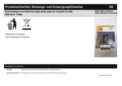 Titel: | Bremsbeläge vorne Bremse brake pads passt an Yamaha Fzr 600 1000 90-91 V-Max |
