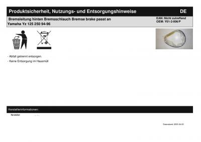 Titel: | Bremsleitung hinten Bremsschlauch Bremse brake passt an Yamaha Yz 125 250 94-96 |