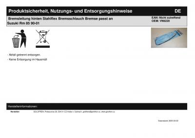 Titel: | Bremsleitung hinten Stahlflex Bremsschlauch Bremse passt an Suzuki Rm 85 90-01 |