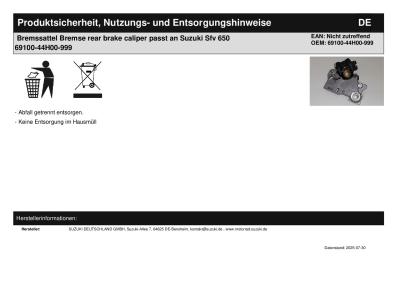 Titel: | Bremssattel Bremse rear brake caliper passt an Suzuki Sfv 650 69100-44H00-999 |