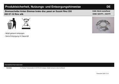 Titel: | Bremsscheibe hinten Bremse brake disc passt an Suzuki Rmz 250 450 07-18 Rmx silb |