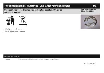| Titel: | Bremsscheibe vorne Bremse disc brake plate passt an Ktm Sx 85 09-15 Sx Sxs |