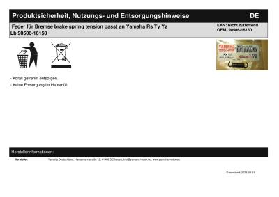 Titel: | Feder für Bremse brake spring tension passt an Yamaha Rs Ty Yz Lb 90506-16150 |