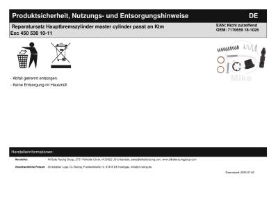 Titel: | Reparatursatz Hauptbremszylinder master cylinder passt an Ktm Exc 450 530 10-11 |