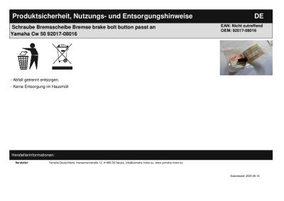 Titel: | Schraube Bremsscheibe Bremse brake bolt button passt an Yamaha Cw 50 92017-08016 |