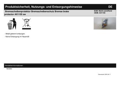 | Titel: | Bremsscheibenprotektor Bremsscheibenschutz Bremse brake protector AX1155 sw |