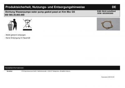 Dichtung Wasserpumpe water pump gasket passt an Ktm Mxc GS 350 565.35.003.000