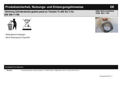 Titel: | Dichtung Zylinderdeckel gasket passt an Yamaha Tx 650 Xs1 2 Xs 650 306-11198 |