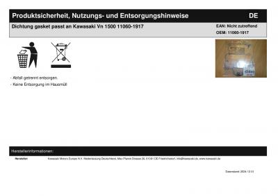 Titel: | Dichtung gasket passt an Kawasaki Vn 1500 11060-1917 |