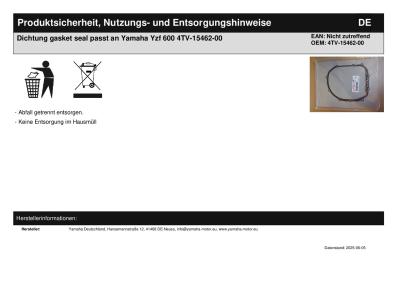 Titel: | Dichtung gasket seal passt an Yamaha Yzf 600 4TV-15462-00 |