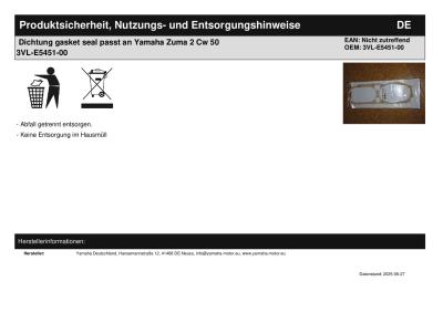 Titel: | Dichtung gasket seal passt an Yamaha Zuma 2 Cw 50 3VL-E5451-00 |