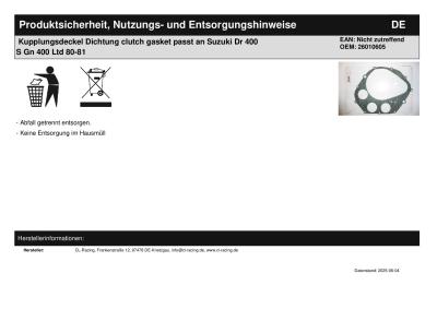 Titel: | Kupplungsdeckel Dichtung clutch gasket passt an Suzuki Dr 400 S Gn 400 Ltd 80-81 |