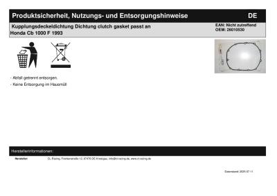 Titel: | Kupplungsdeckeldichtung Dichtung clutch gasket passt an Honda Cb 1000 F 1993 |