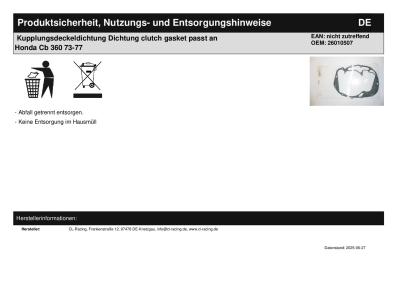 Titel: | Kupplungsdeckeldichtung Dichtung clutch gasket passt an Honda Cb 360 73-77 |