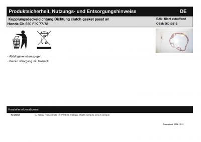 Titel: | Kupplungsdeckeldichtung Dichtung clutch gasket passt an Honda Cb 550 F/K 77-78 |