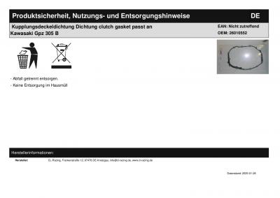 Titel: | Kupplungsdeckeldichtung Dichtung clutch gasket passt an Kawasaki Gpz 305 B |