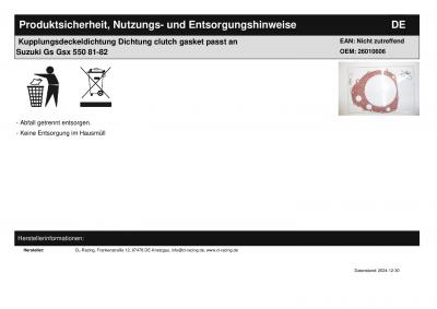 Titel: | Kupplungsdeckeldichtung Dichtung clutch gasket passt an Suzuki Gs Gsx 550 81-82 |