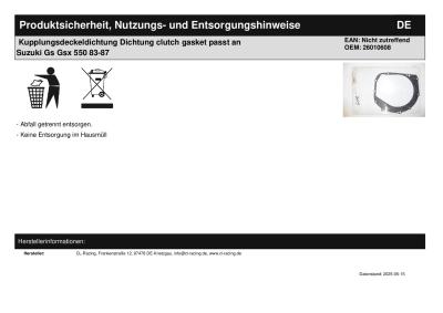 Titel: | Kupplungsdeckeldichtung Dichtung clutch gasket passt an Suzuki Gs Gsx 550 83-87 |