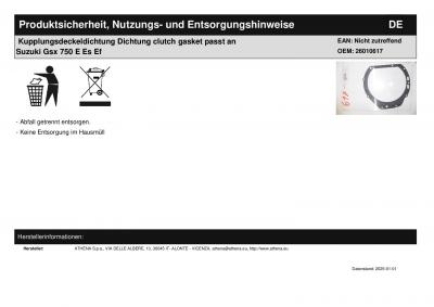 Titel: | Kupplungsdeckeldichtung Dichtung clutch gasket passt an Suzuki Gsx 750 E Es Ef |