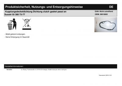 Titel: | Kupplungsdeckeldichtung Dichtung clutch gasket passt an Suzuki Gt 380 73-77 |