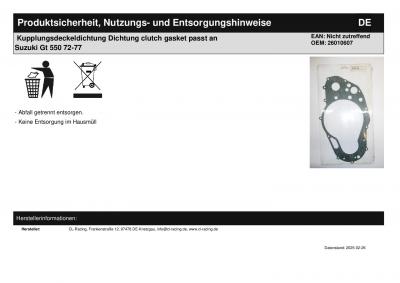 Titel: | Kupplungsdeckeldichtung Dichtung clutch gasket passt an Suzuki Gt 550 72-77 |