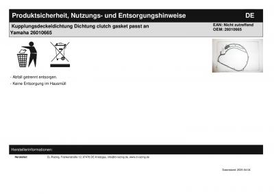 Titel: | Kupplungsdeckeldichtung Dichtung clutch gasket passt an Yamaha Xj 600 92-03 Xjr |